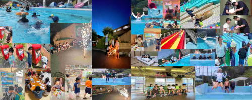 ・滑り台や・ウォータースライダー・流水プール等楽しいプール学習